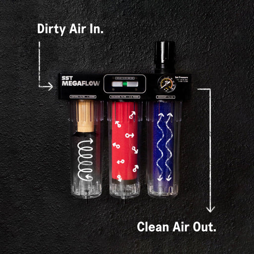 STUPID SIMPLE TOOLSThe SST MEGAFLOW is a Mega-Tough 3-Stage Shop Air Filter & Regulator - designed to last a lifetime - Solid Billet Aluminum Monobody + Premium h...