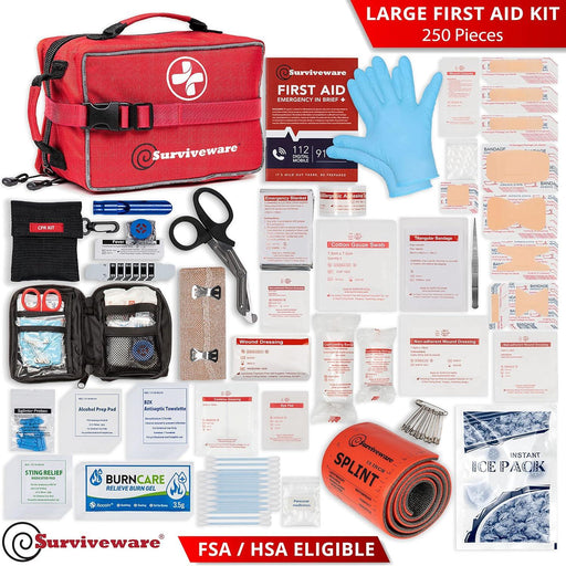 Surviveware Comprehensive Premium First Aid Kit Emergency Medical Kit for Trucks, Cars, Camping, Office and Sports and Outdoor Emergencies - Large 200 Piece Set