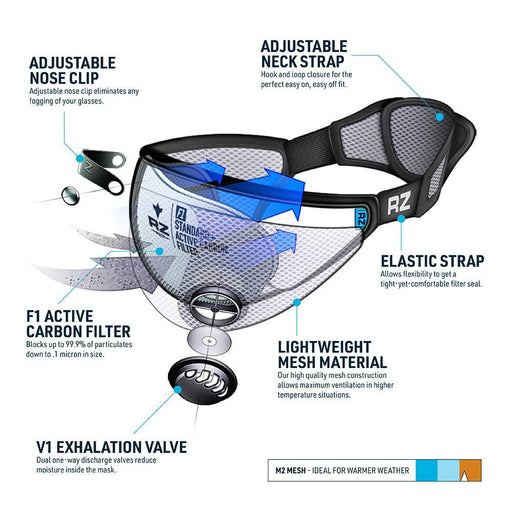 RZ Mask M2 Mesh Air Filtration Face Protection Dust Mask with 99.9% Effective Carbon Filters for Woodworking, Construction, X-Large, Black