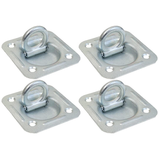Boxer 4 Pack Heavy Duty Recessed D Ring Trailer Tie Down Zinc Plated Bolt-On Anchor - Square 4 Inch