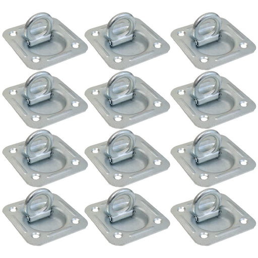 Boxer 12 Pack Heavy Duty Recessed D Ring Trailer Floor Mount, Zinc Plated, Bolt-On Anchor - Square 4 Inch