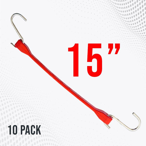 Boxer 15” Color Rubber Bungee Cords – Heavy Duty 100% EPDM Bungee Straps with S Hooks – 15” Red EPDM 10 Pack – Wider & Stronger