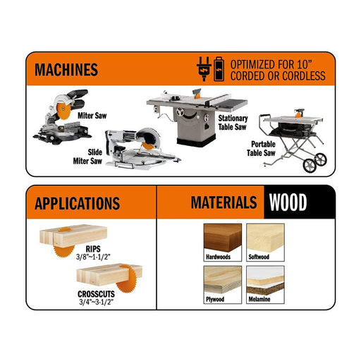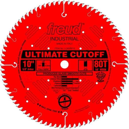 Freud Carbide Tipped Saw Blade with Tico Hi-Density Carbide for Maximum Performance - 10" Diameter, 80 Teeth, 5/8" Arbor, .116" Kerf, ATB Grind - LU85R010