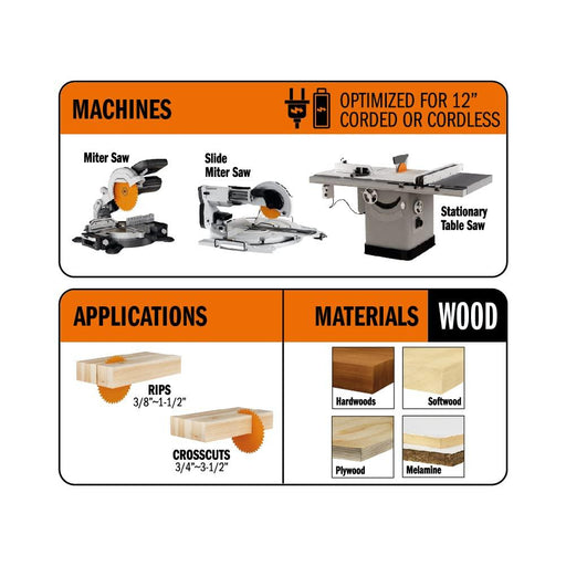 CMT 252.072.12 ITK XTreme Industrial Fine Cut-Off Saw Blade, 12-Inch x 80 Teeth ATB Grind with 1-Inch Bore