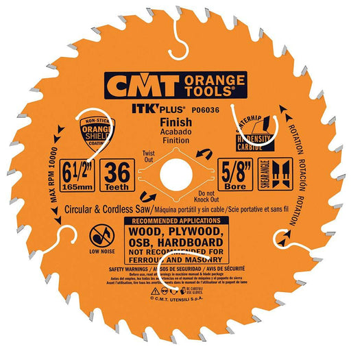 CMT P06036 ITK PLUS Saw Blade for Finishing, 6-1/2 X 36 Teeth, 10° ATB + Shear Angle, 5/8-Inch <> Bore