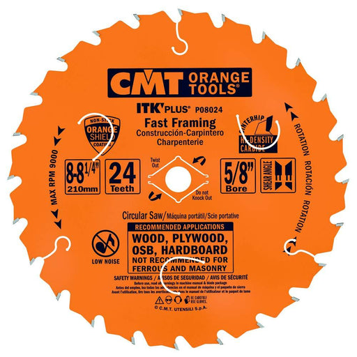 CMT P08024 ITK Plus Fast Framing Saw Blade, 8-8-1/4 x 24 Teeth, 10° ATB+Shear with 5/8-Inch<> bore