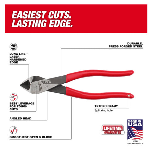 MILWAUKEE ELECTRIC TOOL CORPThe MILWAUKEE® Diagonal Cutting Pliers (USA) deliver the easiest cuts and a lasting edge for the professional user. Our pliers are designed with an...
