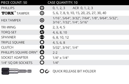 Florida Wholesale Tools50 PC Driver Bit Sets Made from S2 modified shock resistant steel for professional performance and durability. Proprietary precision CNC mach...