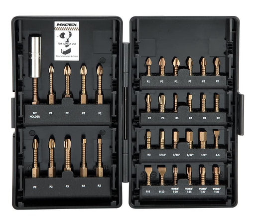 VEGA Industries34 PC Impactech® Driver Bit Set Made from S2 modified shock resistant steel for professional performance and durability. Patented spiral tors...