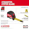 MILWAUKEE ELECTRIC TOOL CORPThe MILWAUKEE 8m/26ft Magnetic Tape Measure delivers a Straighter, Stiffer Blade. The blade remains stiff at 12', resulting in less blade rollov...