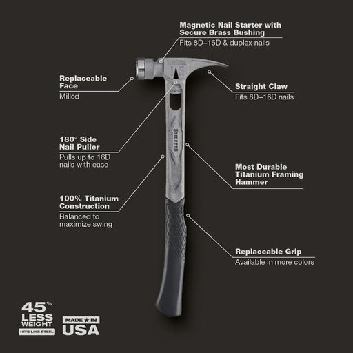 STILETTOThe STILETTO® 15oz TIBONE™ Hammer with Smooth Steel Face and Curved Handle is our most powerful and most durable hammer. This All-Titanium hammer i...