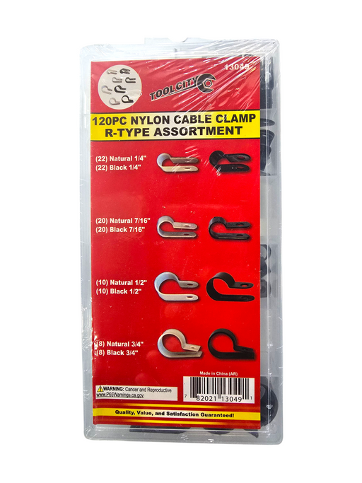 Tool City120PC NYLON CABLE CLAMP R-TYPE ASSORTMENT