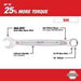 The MILWAUKEE® SAE Combination Wrenches provide you with 25% more torque than smooth-faced wrenches with our innovative MAXBITE™ Open-End Grip. In addition to increased torque, MAXBITE™ also reduces the rounding and stripping of nuts and bolts. The ergonomic wrench features an I-Beam handle for optimized comfort and durability. Ink-filled size labels allow for easy size identification and quick distinction between SAE and metric sets. The MILWAUKEE® SAE wrench sizes range from 1/4" to 1-1/2" and feature a Lifetime Guarantee.