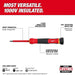 Our MILWAUKEE® 8-in-1 1000V Insulated Precision Multi-Bit Screwdriver is a versatile fastening solution to easily swap out bits. The 1000V-rated layer of insulation is flame-retardant and impact-resistant. This insulated multi-bit driver features a 360-degree rotating back cap which offers greater control for speed and precision on the jobsite. It also has a comfortable, non-slip grip for maximum control. Our Milwaukee® 8-in-1 1000V Insulated Precision Multi-Bit Screwdriver includes common tip types such as Phillip's, Slotted, and Torx and a storage case. These insulated screwdrivers are UL Classified and meet IEC 60900 and ASTM F1505 standards for insulated hand tools and are backed by our Milwaukee® Limited Lifetime Guarantee.