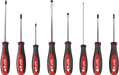 Featuring hardened tips & forged shanks the Milwaukee® 8 Piece Screwdriver Set provides professional grade solutions and durability to the user. Bit types are marked on the cap of each tool for quick identification and increased efficiency.The comfortable tri-lobe handle allows users to comfortably apply more leverage.