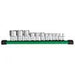 The MILWAUKEE® 12pc 1/4", 3/8", and 1/2" Drive External TORX® Socket Set with FOUR FLAT™ sides is designed from the ground up to be part of the most versatile socket family. Milwaukee® E-Torx sockets feature an innovative design with four parallel flat sides, which deter rolling and are wrench-compatible. The laser-engraved size markings provide easy identification, and chrome plating offers rust and corrosion protection. This set includes a storage rail for better organization. All Milwaukee® sockets are backed by a Lifetime Guarantee.