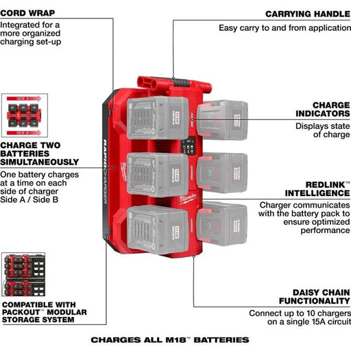 Original price $309.00 - Original price $309.00Original price$309.00$309.00 - $309.00Current price $309.00| /Milwaukee 48-59-1817 M18 6-Bay Daisy Chain Rapid ChargerMILWAUKEE ELECTRIC TOOL CORPThe MILWAUKEE M18 Six Bay Daisy Chain Rapid Charger is the most versatile shop-to-mobile charging solution. The Six Bay Daisy Chain Rapid Charger f... View full detailsOriginal price $309.00 - Original price $309.00Original price$309.00$309.00 - $309.00Current price $309.00| /