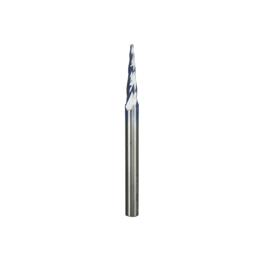 FREUD AMERICA INC6.2° x 1/32" Tapered Ball Tip Solid Carbide Bit. Includes 3 flutes and 1/32" diameter. 1/4" Shank. This solid carbide carving bit features an ext...