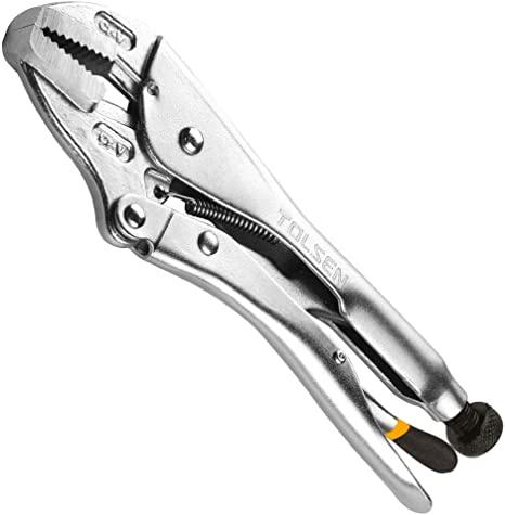 TOLSEN10049 10″ Cr-V Locking Pliers Curved (Industrial) HRC52-HRC56, Nickel Plated